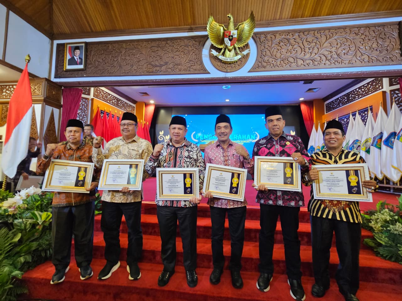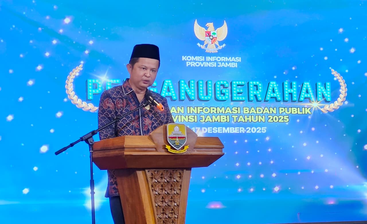 Jambi (Kemenag) – Ketiga kalinya, Kantor Wilayah Kementerian Agama Provinsi Jambi kembali menerima anugerah keterbukaan informasi badan publik se-provinsi Jambi tahun 2025 kategori instansi vertikal provinsi sebagai badan publik “Informatif”. Penghargaan tersebut diterima langsung oleh Kepala Kantor Wilayah Kementerian Agama Provinsi Jambi, Mahbub Daryanto dalam ajang Penganugerahan Keterbukaan Informasi Badan Publik Se-Provinsi Jambi Tahun 2025 yang diselenggarakan oleh Komisi Informasi (KI) Provinsi Jambi pada Rabu (17/12/2025) di auditorium rumah dinas Gubernur Jambi.